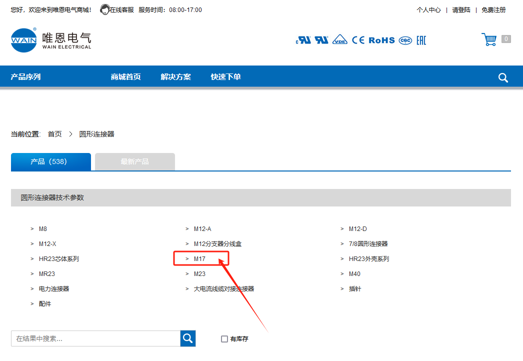 WAIN商城M17系列圓形連接器