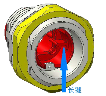 插針裝好后,根據(jù)鍵槽對應長鍵,將插芯壓入已安裝在面板上的法蘭座內(nèi)的插體中。