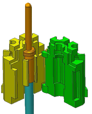 ②將壓好線的插針先裝進中間孔,然后扣合好